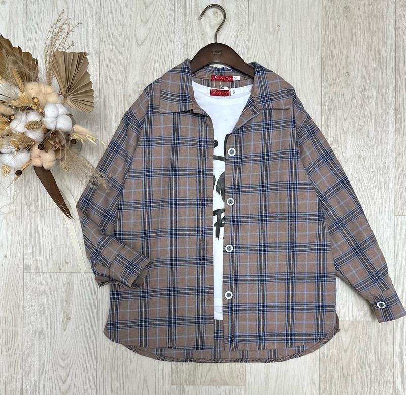 Стильне поєднання Футболка+сорочка тканина футболки кулір преміум якості тканина сорочки фланель сорочка на ґудзиках ЯКІСТЬ ЧУДОВА!!! 158-164-1шт довжина футболки/пог/довжина сорочки/ширина/рукав повністю 140-146р-56/53/62/49/62 146-152р-58/54/64/51/64 152-158р-60/55/66/52/66 158-164р-61/56/67/52/68
