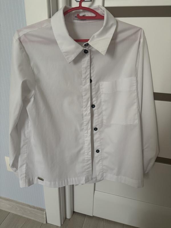 Біла сорочка як святкова так і повсякденна, стан нової речі, одягнена разово, завдяки своєму оригінальному крою підходить під брюки, джинси чи спідничку, якісний пошив, сідає ідеально