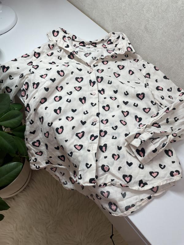 Стильна сорочка для принцеси фірми Zara. По бірці розмір 116. В реалі на 4-5 років. Моя мала дуже її любила. Стилізували і під гольфи-сорочки і на неї вдягали жилетки та светри. Під спіднички і брюки Стан нормальний