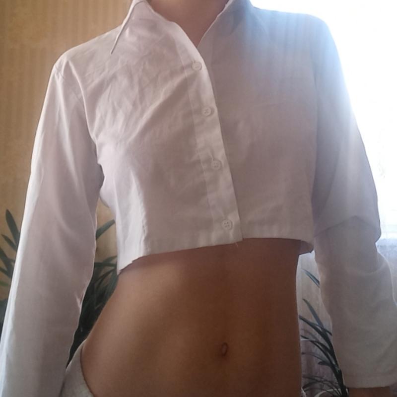 Укороченная рубашка от украинского бренда MOON застегивается на пуговицы и имеет длинный рукав навигобъем коме:38 длина рукава:48 длина изделия:39