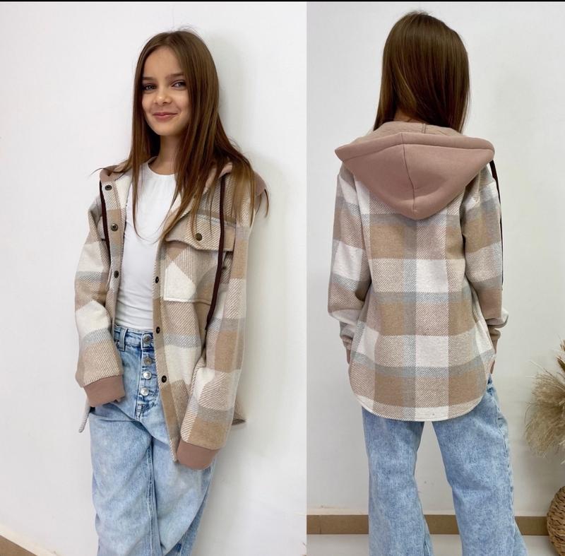 через кнопку купити тільки повна оплата!!! Арт 6052 Стильна сорочка Саме те, ще потрібно на любий образ Тканина щільна сорочкова капюшон і манжети тринитка Застібається на кнопки В капюшоні робочий шнурок Супер якість зріст/довжина попереду/пог/рукав від горловини похибка +-2см 158/67/50/72-1шт 164/70/51/75-2шт Тан