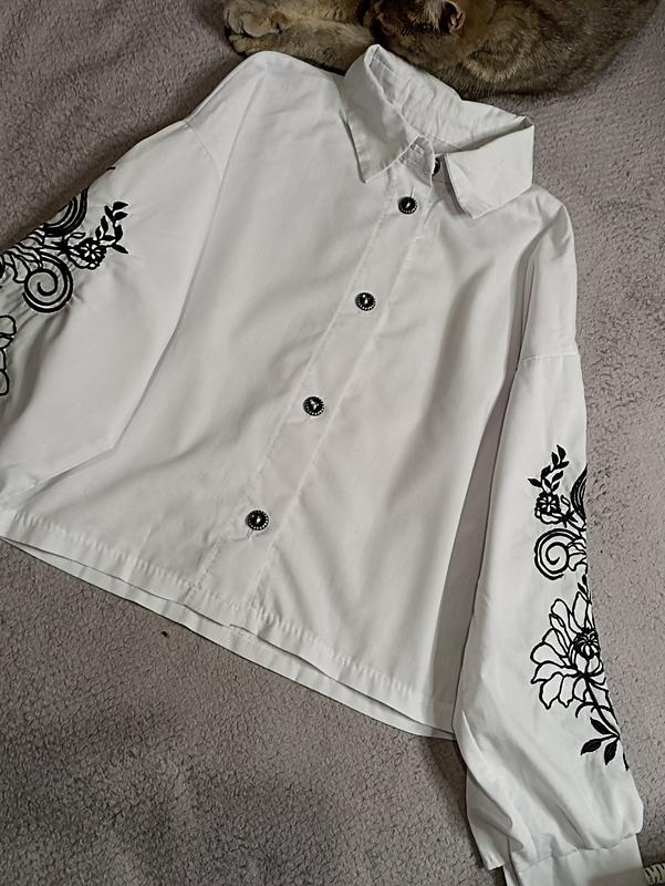 Рубашка укороченная с вышитыми рукавами, в идеальном состоянии. Без дефектов Длина 44 грудь 44 рукав от шеи 59 рукав от шва 41 Оверсайз