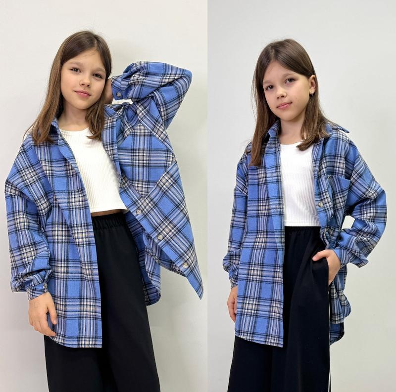 через кнопку купити тільки повна оплата!!!! арт 7272 Сорочка у клітинку крій овер на ґудзиках з кишенькою тканина мʼякенька фланель Супер якість! зріст/довжина по переду/пог/рукав від горловини похибка+-2см 140-146/64/52/61-1шт 152-158/68/56/67-1шт 164-170/73/58/72-2шт Тан