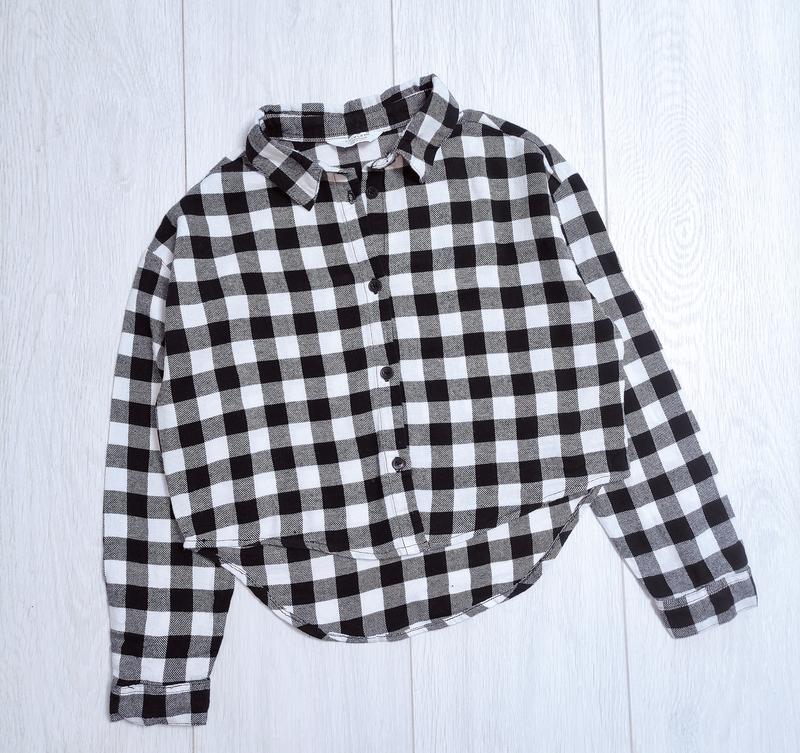 Буде класно під джинси, під спідничку пліссе. Класна вкорочена сорочка Primark 9-10 років Стан супер Довжина 39/49 Ширина під ручками 46 Рукав від горловини 57