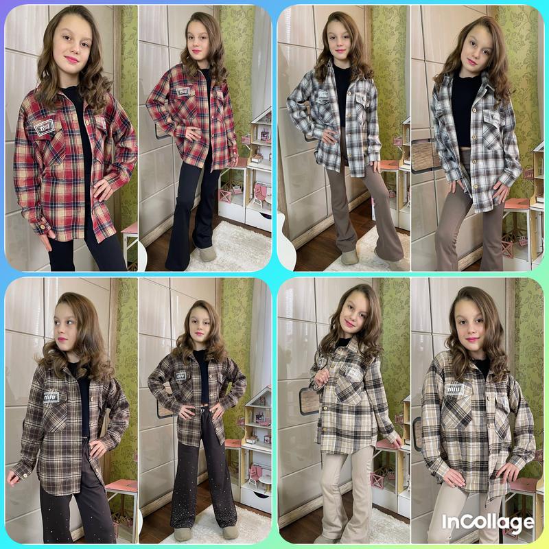 Стильна сорочка в клітинку 💗 Тканина турецька фланель, супер якість 🔥 застібається на гудзики Заміри: довжина/пог/рукав від плеча 128 - 56/47/46 134 - 60/48/48 140 - 63/49/50 146 - 64/49/53 152 - 65/52/54
