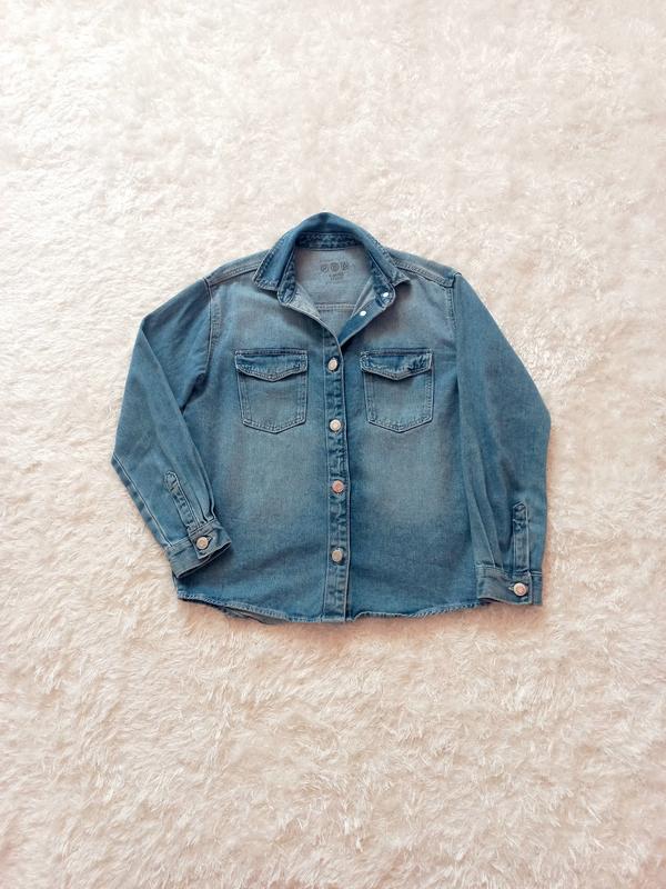 Продам джинсову сорочку від фірми Primark. Стан ідеальний, як нова. Якість відмінна. Одягали пару разів. Можна носити як куртку. Розмір підійде на 134-140 см (9-10 років). Заміри на фото.