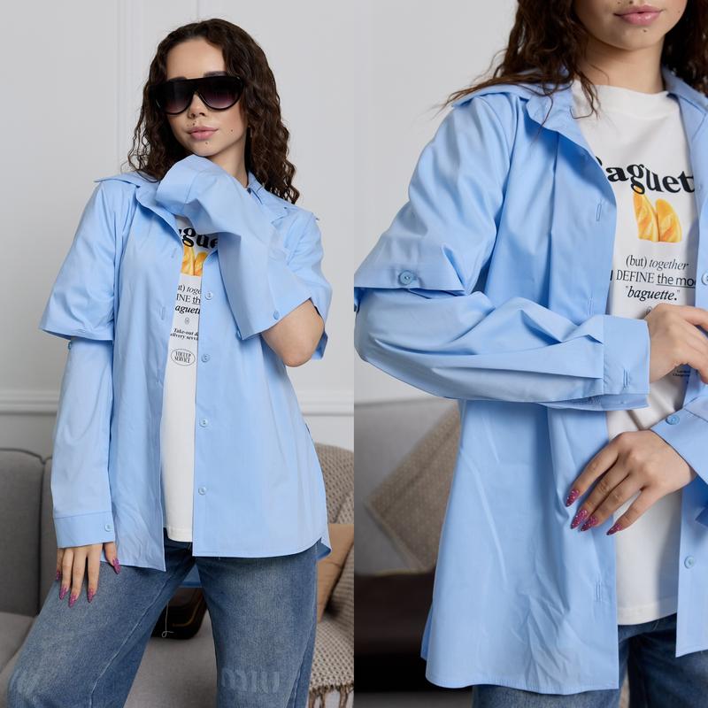 Сорочка однотон незвичного формату розрізаний рукав по колу на ґудзиках розкриває простір для фантазії Тканина котон РЕКОМЕНДУЮ!!! зріст/довжина по переду/пог/рукав від горловини похибка+-2см 140-146/59/45/56 146-152/61/46/59 152-158/63/47/63 158-164/66/48/66 164-170/70/49/70