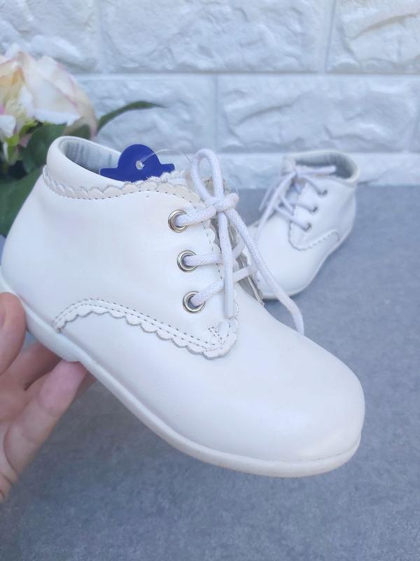 К. 180 👧Білі черевички Apawwa, верх еко-шкіра, шкіряна устілка з супінатором, що регулюються шнурками та замочком. 24р устілка 14,5 см Ціна 320грн💟