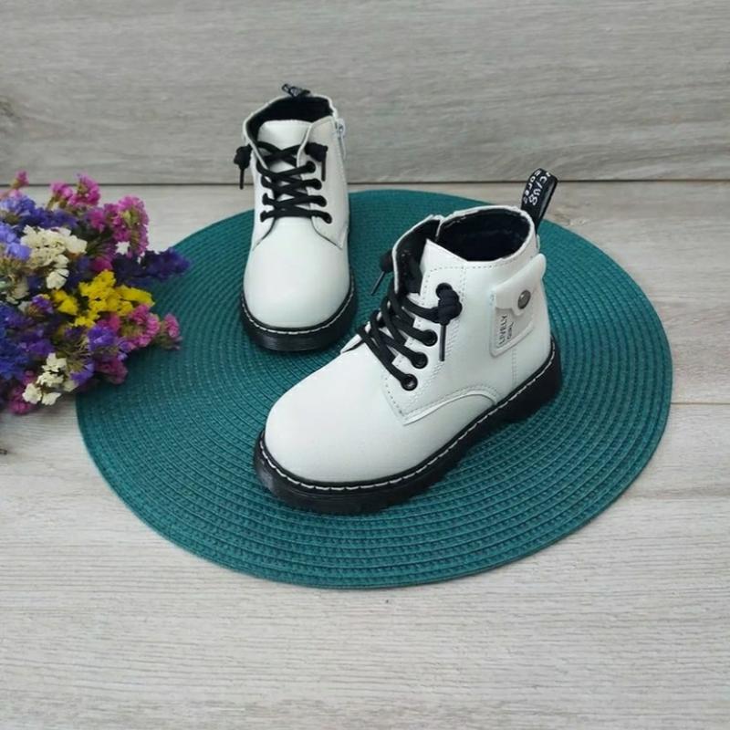 💜 Розмір: 26 - 15,5 см 27 - 16,3 см 28 - 17см 29 - 17,5 см 30 - 19см - верх еко шкіра, - всередині утеплені плюшиком, - шкіряна устілка з супінатором, - фіксація шнурками, збоку на змійці, - на ніжці дуже стильно дивляться 🥰 - легкі та зручні. 💜 Якість 🔥🔥🔥 🔥