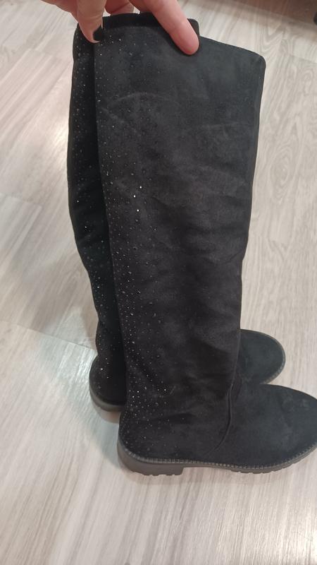 Чоботи фірмові,високі зимові від Itts, для дівчинки розмір 37, 22см по устілці. Дуже гарні еко замш, всередині штучне хутро. Вцілому стан гарний замочки працюють ніде не відклеєні, є не значні сліди носіння. Відпало декілька камінців з внутрішньої сторони (останнє фото). Наяву виглядають як натуральні.