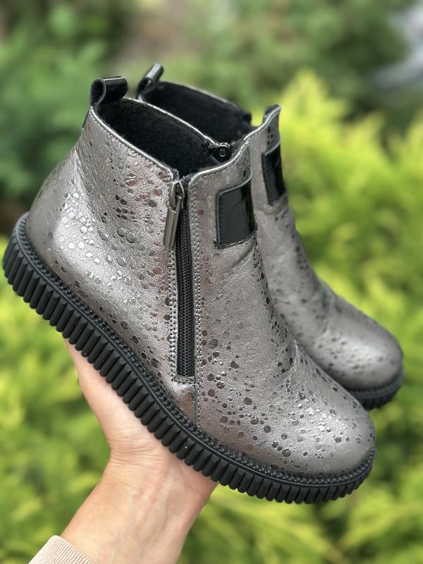 🖤 Стильні дитячі демісезонні шкіряні черевики ✨ Модні та практичні черевики для дівчинки – ідеальні для прохолодної осені та весни. 🔹 Колір: сріблясто-металевий з декоративними крапельками, що красиво переливаються при світлі. 🔹 Матеріал: високоякісна шкіра – стійка до вологи, легко очищується. 🔹 Підкладка: теплий фліс для комфорту ніжок у прохолодну погоду. 🔹 Підошва: гнучка та неслизька з рельєфним протектором для кращого зчеплення. 🔹 Застібка: дві блискавки з боків для легкого взування. 🔹 Декор: стильна нашивка з логотипом, що надає сучасного вигляду. ✅ Легкі та зручні – дитина може сама швидко взутись. ✅ Чудово поєднуються з джинсами, легінсами, сукнями. 📏 Наявні розміри: уточнюйте у повідомленнях. 💰 Ціна: доступна – пишіть, щоб забронювати! 32-20