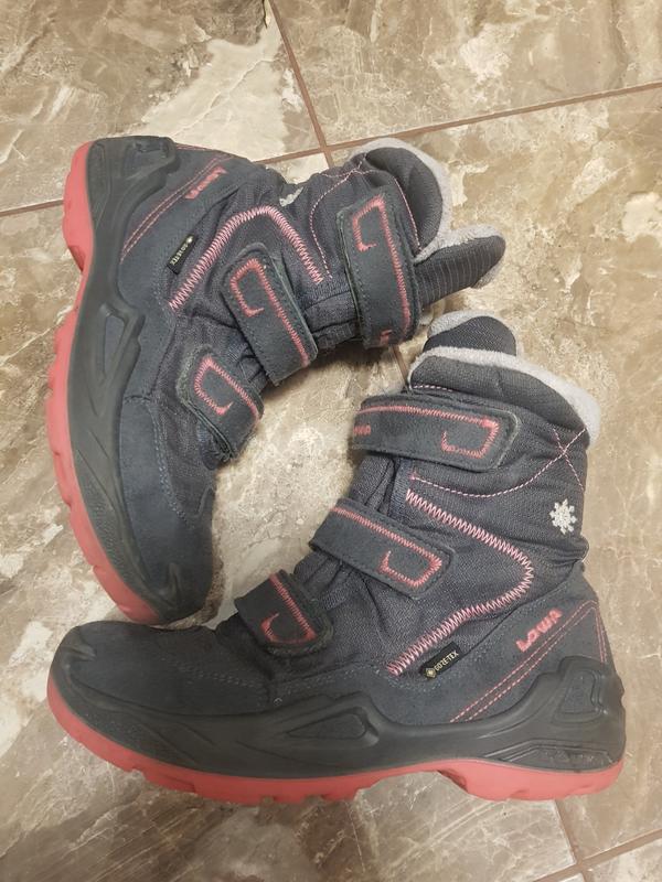 Зимові чобітки Lowa. Розмiр 35. Устілка - 21,8 см. Матеріал - нубук+нейлон. Підкладка- Gore-tex + утеплювач. Розраховані на температуру до мінус 8 градусів. Не промокають, у взутті зберігається мікроклімат: зайва волога виводиться, нога не пітніє і за рахунок цього не мерзне. Стан дуже хороший.