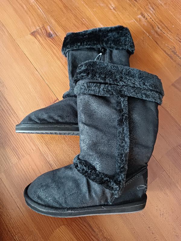 Нові дитячі уги із екозамші з напиленням, утеплені флісовою підкладкою і декоровані штучним хутром. Збоку вставлена змійка, не до самого верху. Розмір 33. Є ще схожі уги в 33&34 р. в інших оголошеннях. Додаткові фото і заміри запитуйте в директ 📩