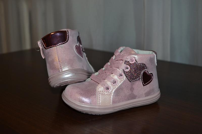 Очень красивые ботиночки для девочки розового цвета с шимером. Верх изготовлен из высококачественной мягкой эко-кожи. Внутри кожаная стелька с супинатором. Жёсткий задник, шнурочки хорошо фиксируют ногу, сбоку для удобства есть молния. Ботинки лёгкие и качественные, подошва очень гибкая. 20р. по стельке 12,4 см 21р. по стельке 13,1 см 22р. по стельке 14,0 см 25р. по стельке 15,8 см