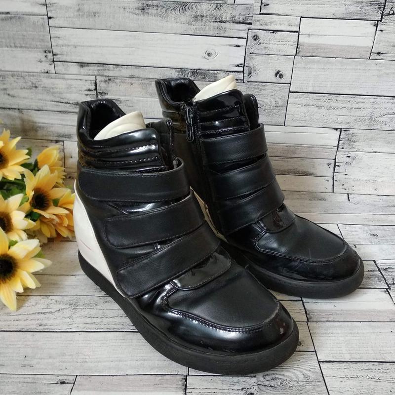 Сникерсы ботинки деми на девочку на танкетке в хорошем состоянии, есть небольшие счесы маломерят Размер по бирке 35,по стельке 21 см (подойдут на 33 размер) цвет черно белый высота танкетки 5 см впереди немного сбиты носки кожзам и лаковые вставки застежка на молнии и липучке