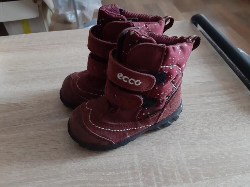 Термо сапоги бренд Ecco. Верх Текстиль комбинирован с замшей натуральной. Покрітие Gore-tex. Состояние идеальное. Обуты несколько раз в доме для примерки. Покупались заблаговременно и непопали по размеру в сезон. Размер 22 Стелька 13,5 см до загиба. Полная от края до края 14.00 см