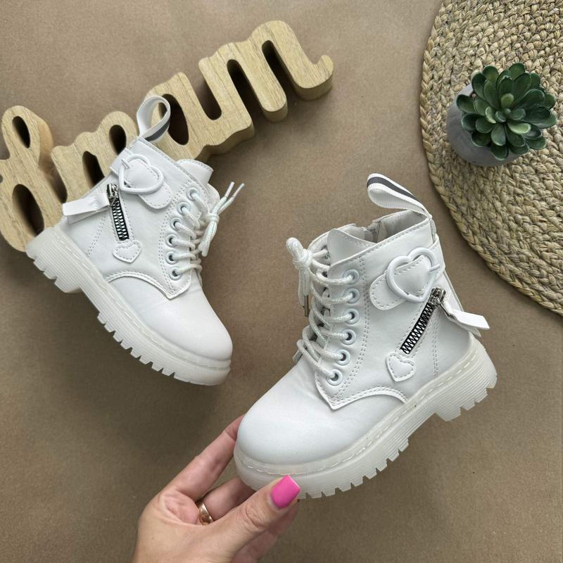 Стильні демі черевики на тракторній підошві! Верх- екошкіра. Застібка- блискавка, повнота регулюється шнурівкою. Утеплені- флісом. Розміри: 26- 15,2 27- 16,3 28- 16,5 29- 17,**********,5.