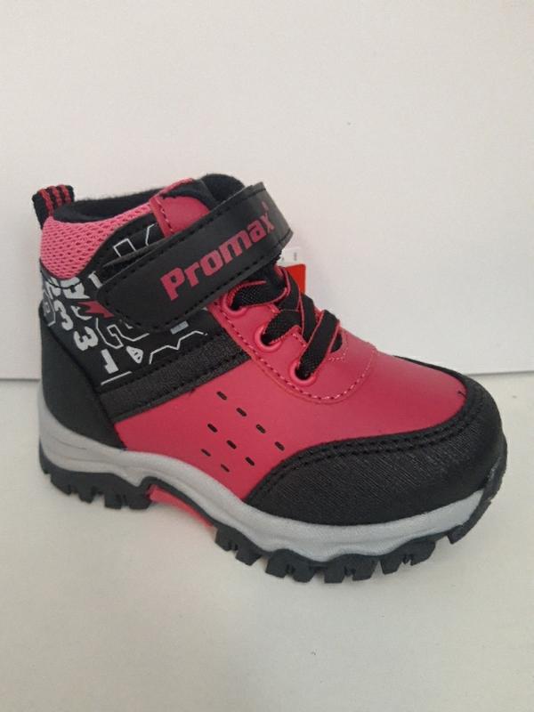 Опис Черевики Promax виконані зі штучної шкіри, внутрішня підкладка та устілка - взуттєвої текстиль. Деталі: застібка на одній липучці + шнурки, зручна колодка.