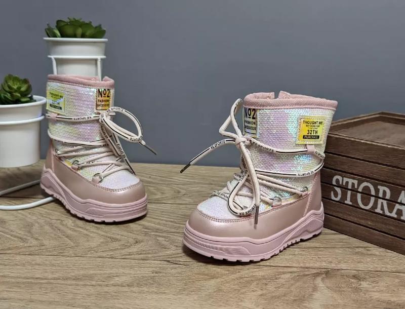 Улюблена зимова модель для дівчаток. Верх еко шкіра і паєтки( не промокають). Всередині густе тепле хутро ( натуральна овчина 60%). До -30 морозу. Збоку є замочок Легенькі та зручні. Розміри: 23р-14,8см 24р-15,5см 25р-16см 26р-16,5см 27р-17,3см 28р-17,8см 29р-18,6см 30р-19,3см ✅✅ Ціна 850грн фото реал арт81 Angel clo