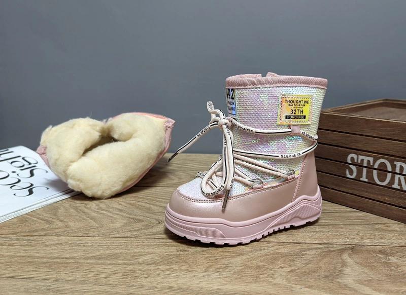 Улюблена зимова модель для дівчаток. Верх еко шкіра і паєтки( не промокають). Всередині густе тепле хутро ( натуральна овчина 60%). До -30 морозу. Збоку є замочок Легенькі та зручні. Розміри: 23р-14,8см-2шт 24р-15,5см-2шт 25р-16см -2шт 26р-16,5см-2шт 27р-17,3см-2шт 28р-17,8см-2шт 29р-18,6см-2шт 30р-19,3см-2шт ✅✅ Ціна 750грн