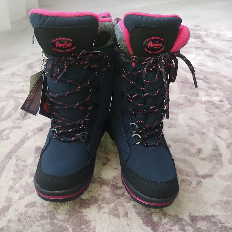 Зимові термо черевики для дівчаток ТМ American Club (Польща). Верх - продувається тканина+Softshell. Утеплювач - фліс+водонепроникний матеріал Softshell. Легкі, зручні, абсолютно не громіздкі. Реальні заміри по устілці: 19 см. Розмір 29 Нові