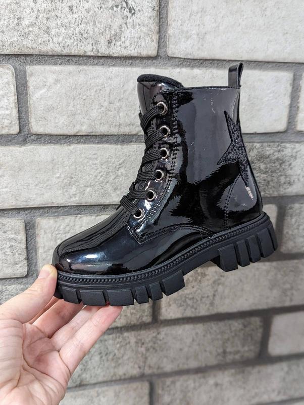 Мега стильні зимові черевики для дівчаток від фірми Weestep. Якість на висоті. Верх якісний еко лак. Не тріскає на морозі Всередині густе тепле хутро (натуральна овчина). До -30 морозу. Фіксація шнурівка Збоку є замочок. Легенькі та зручні. Розміри: 27р-17,5см