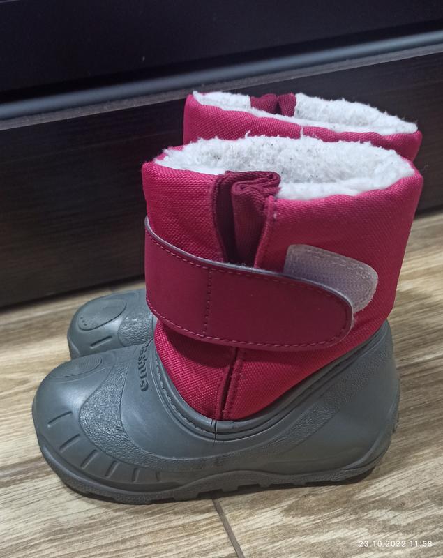 Сапожки в хорошому стані. Є трішки дефект, на останньому фото, тільки на лівому чобітку. На носіння ніяк не впливає. Тому і ціна відповідна. Розмір 22/23, устілка 14 см.