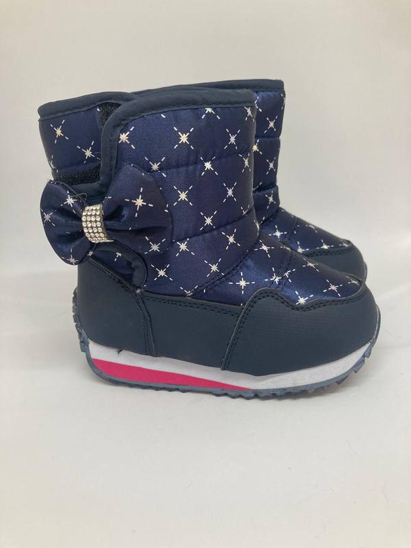 Стильні, високої якості і дизайну дутики з бантиком . Верх виконаний з водостійкого матеріалу. Натуральний утеплювач всередині (овчина 60/40%) зручна липучка, що дозволяє дитині самостійно взуватися висока якість матеріалів та неперевершений дизайн Розміри: 23р.14см.0шт 24р.15см. 0шт 25р.15,5см.2шт 26р.16см. 0шт 27р.16,8см. 0шт 28р.17,5см. 1шт