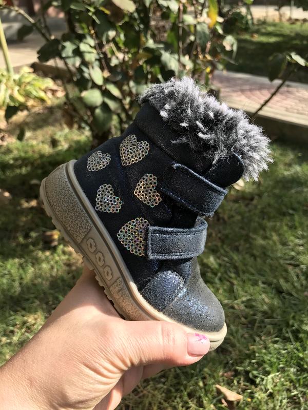 Отличные ботиночки для девочки. Размер 22, по стельке 13-13,5 см. Внутри очень густая овчина, теплющие. Подойдёт на высокий подъем. Без нюансов, все рабочее, не протекают.