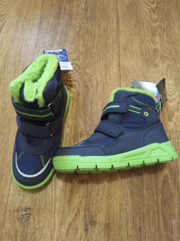 26: 1 Сверху - комбинация полиуретана и влагостойкого материала. Внутри - легкая плюшевая подкладка и стелька внизу фольгированная для сохранения тепла Застежка - липучка. Прочная подошва.
