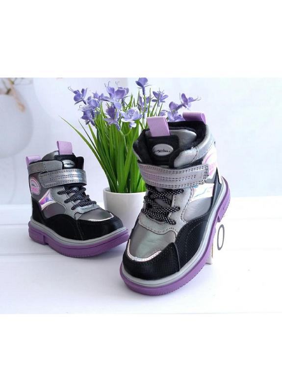 Стильні зимові черевички для дівчинки підлітка. Дуже теплі та міцні. Зовні м'яка, приємна на дотик, штучна шкіра. Усередині щільне густе чорне хутро, яке прекрасно зберігає тепло, і не дає холоду проникнути всередину до ніжок вашої дитини. Для зручного взування збоку є змійка, на підйом регулюється гумкою. Модна цікава модель для ваших діток. Поєднання завжди елегантної срібної шкіри з бузковими вставками та декором має неймовірно стильний та дорогий вигляд. Підошва з протектором, не ковзає. Підійдуть на стандартну ніжку, середньої повноти. Замір зроблений за устілкою, обов'язково залишайте запас від 1 до 1,5 см на теплий носочок, і щоб взуття було не прискіпливим і не стискало ніжку. Для вибору свого розміру дивіться розмірну сітку на цю модель: 23р — 14,5 см
