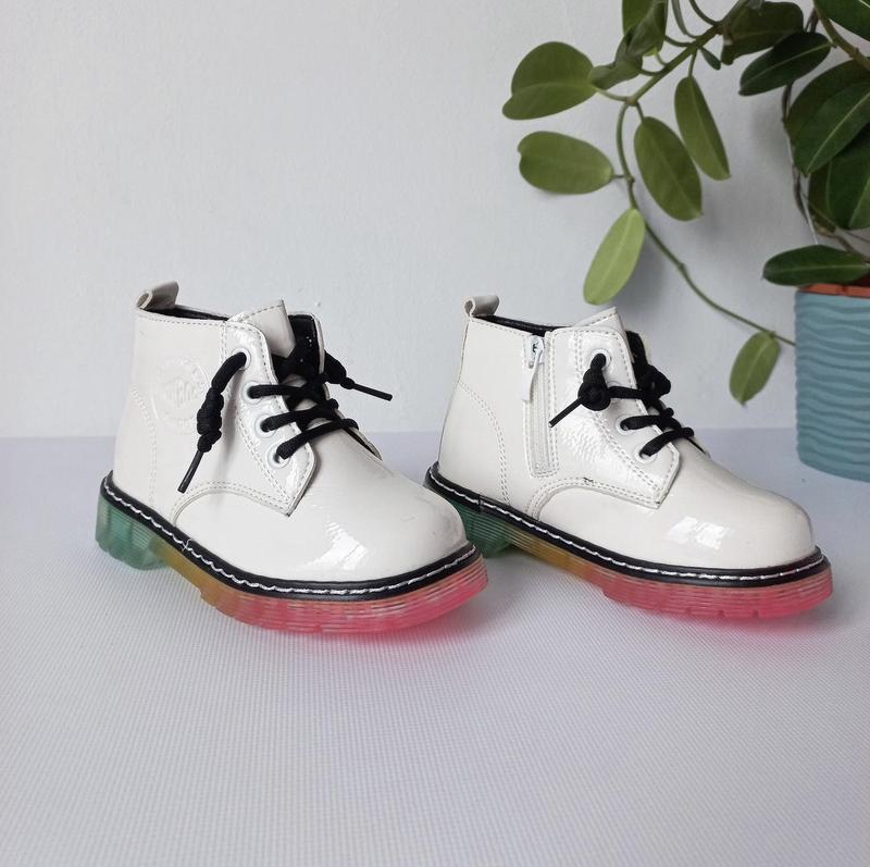 Демі черевички тм Kimboo🤍виконані в лакованій екошкірі! Серединка утеплена флісом👌🏻устілка шкіряна з супінатором👌🏻мають замочок та шнурівку, яку можна регулювати👌🏻мінімалістичні з яскравою підошвою😍 В наявності 26 - 16,4 27 - 17 (2) 28 - 17,7 (2) 29 - 18,3 (2) 30 - 19