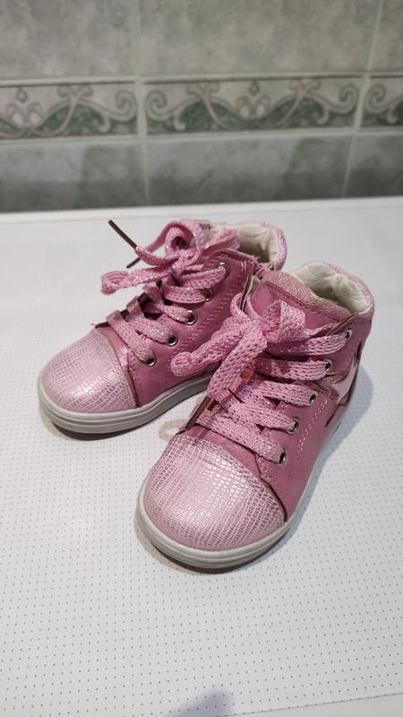 дуже гарні черевики в хорошому стані,одягались декілька разів,є потертість на переді(останнє фото)при носінні не помітно р 22 -14 см