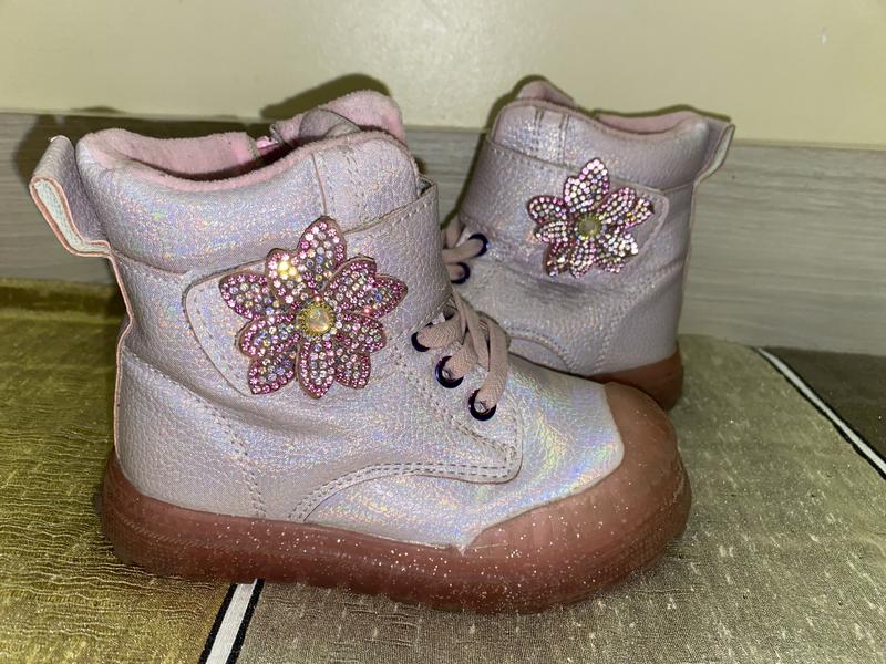 Деми ботинки в хорошем состоянии! 26 размер. Липучки-замки - все работает. Все стразы на месте. Очень красивые на ножке и удобные!