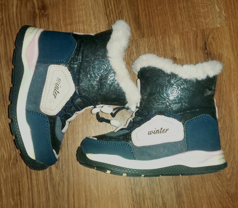 Верх із термо-матеріалів з водонепроникною та вітрозахисною системою Waterproof Windproof. Теплі - всередині густе набивне хутро, підошва з якісної гуми з антиковзним ефектом. з дефектів тільки собачки на змійках. щоб не розтібалися, зафіксували нитками (за потребою легко прибрати) устілка 18 см