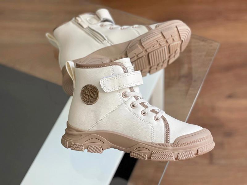 Стильні ботінки Модель від Т.М JG Ззовні еко-шкіра Устілочка шкіряна , є супінатор Утеплені м’якеньким плюшем Носочок прорезинений Бокова застібка колір беж ЦІНА 920 31 розмір 20 см 32 розмір 20.8 см 33 розмір 21.5 см (2 шт 34 розмір 22.3 см ( 2 шт 35 розмір 22.8 см 36 розмір 23.5 см