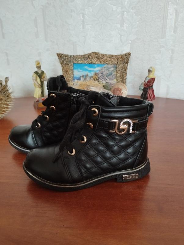 Демисезонные ботинки чёрного цвета в хорошем состоянии.Длина стельки 16,5см.Немного счесаны носки.