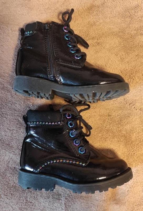 Зручні утеплені черевички .Стан нових,носили тиждень. Оздоблення гарне,кольорове. Мають блискавку,зручно вдягати. Устілка 15 см .