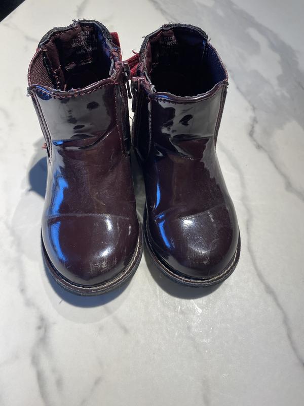 Ботинки лаковые бордовые. Есть следы носки. Размер 24. Полномерные.