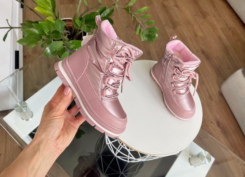 Неймовірна зимова новинка Верх еко шкіра та водонепроникна плащівка. Всередині густе , тепле хутро( натуральна овчина 60%). Фіксація на шнурівку. Збоку є замочок. Дуже легесенькі та зручні. Якість чудова 27 розмір 17.7 см 29 розмір 19 см (2 шт 30 розмір 19.5 см (2 шт 31 розмір 20.3 см 32 розмір 20.8 см