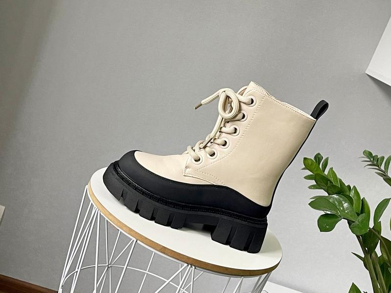 Зимові черевики Верх якісна еко-шкіра Об’ємна підошва Всередині густе тепле хутро Бокова блискавка і шнурівка Носочок захищений колір беж з чорним 32 розмір 21,4 см 33 розмір 22 см 34 розмір 22,5 см (2 шт 35 розмір 23,3 см 36 розмір 23,8 см 37 розмір 24,3 см