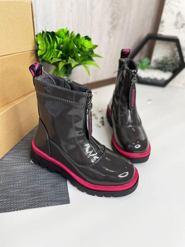 Получили эту красоту для более старших девочек. Какие они крутые, стильные темно-серые с розовым ботиночки. Изысканный сдержанный дизайн, но такой неповторимый. Фиксируются сбоку на молнию. Утеплены флисом. Стелька флис. 790грн 35р. - 22,0см (2шт.) Измерение сделано внутри по стельке лично мной, погрешность 1-2мм допустима. Обмен возможен при наличии нужного размера, возврат нет. Есть накладной платеж.