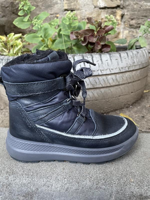 Зимові шкіряні черевики Ecco Gore-tex 28 р Довжина по устілці — 17,5 см Верх — натуральна шкіра Всередині — хутро Колір синій На дівчинку