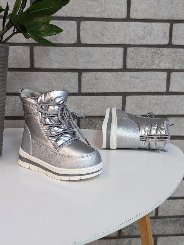 Неймовірна зимова новинка для дівчаток від фірми Kimboo. Верх еко шкіра та водонепроникна плащівка. Всередині густе , тепле хутро( натуральна овчина 60%). Фіксація на шнурівку. Збоку є замочок. Дуже легесенькі та зручні. Якість бомбезна. Розміри: 24р-15,2см- 30р-19,5см-