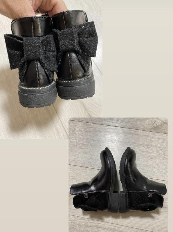 Фото на тілі нема Застібається на замочки Носики округлені Ззаді бантики Утеплювач середній варіант Демі-підійде і на теплу зиму/із нюансів -на носиках невелика потертість,на фото вказано,у ціні враховано ,продається як є без повернення/Підійде на 25-26розмір Устілка 16 см) Висота чобота 11,5 см) Ширина підошви 7,4 см)