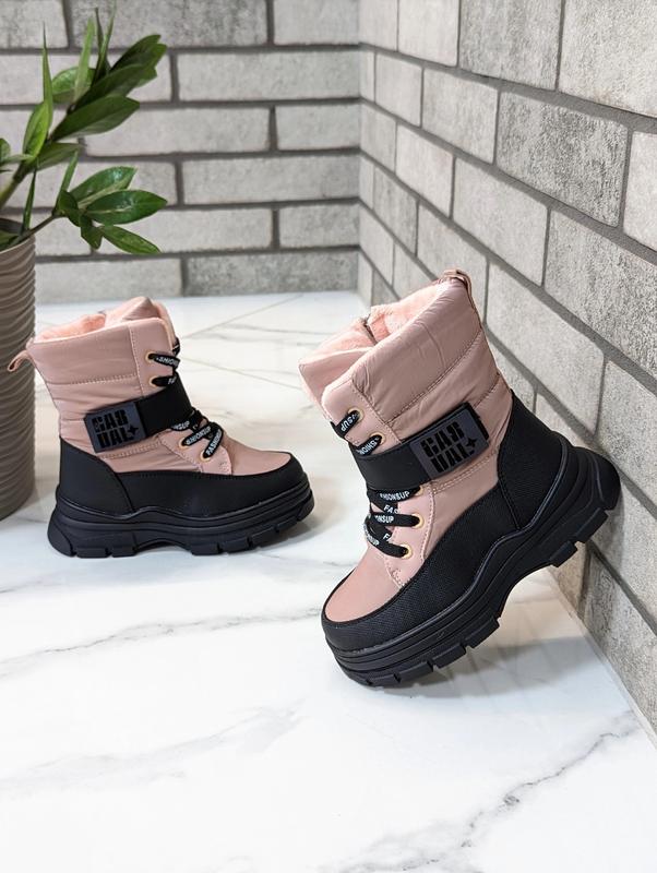 Стильна Зимова новинка для дівчаток. Верх еко шкіра та водонепроникна плащівка, яка не пропускає вологу та холод. Всередині густе, тепле хутро ( натуральна овчина 60%). Фіксація на шнурівку, липучку. Збоку є замочок. Легкі та зручні. Розміри: 27р-17см 28р-17,8см 29р-18,3см-2шт 30р-19см-2шт 31р-19,5см 32р-20,3см ✅✅