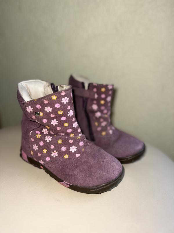 Очень стильные демисезонные замшевые ботинки (сапожки) на девочку. Полностью кожаные. Хорошее качество известного бренда Bartek. Замер стельки есть на фото.