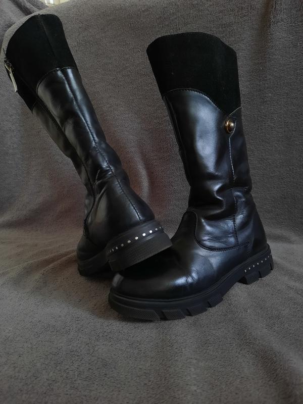 Високі черевики з натуральної шкіри На середню і ширшу ногу В гарному стані (дочка відносила один сезон і стали маленькі) Утеленні вовчиною розмір 33 +- 21,5 - 22см