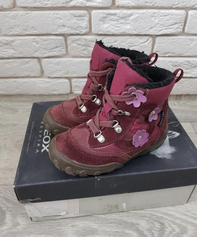 Детские зимние сапожки GEOX р.25 стелька 16,5см. ЛЕГКИЕ, НЕМАРКИЕ, УДОБНЫЕ. На мой взгляд ботинки в идеальном состоянии. Если в этом сомневаетесь, могу сделать дополнительные фото на . Родная коробка. В живую лучше чем на фото. Цвец насыщеный. Одевала на тонкий носок и ноги после прогулки теплые и сухие. Благодаря мембране ножка дышит и не потеет.Подошва целая. Шнурки позволяют регулировать подъем. Подойдут для высокого подъема. ДРУГИЕ ВАРИАНТЫ ОБУВИ СМОТРИТЕ В МОИХ ОБЪЯВЛЕНИЯХ. НЕ СЭКОНД. ОБУВЬ С ПЕРВЫХ РУК