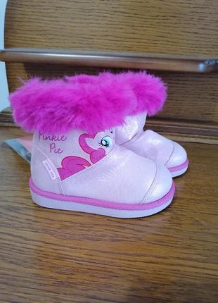 Стильні брендові черевички уггі, р 23, рожевого кольору, нові, сток, устілка 15 см, верх штучна замша, всередині утеплений текстилем і штучним хутром, чудово сідають по ножці і носяться добре. Мають принт з мультика про Pinkie Pie. Виробник Stride rite, Америка, що спеціалізується на виробництві якісного дитячого взуття, яке ідеально сідає на дитячу ніжку. Сток.